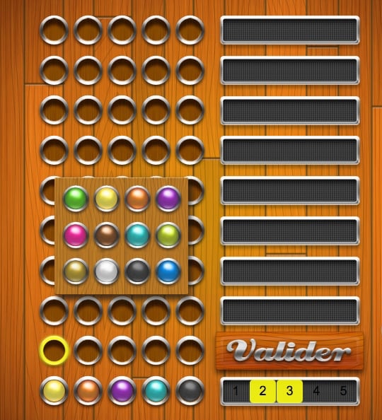 | Retrouvez la combinaison que le système a choisi. Pour cela vous avez 10 essais. Choisissez 5 billes de couleurs parmi les 12 billes en cliquant sur la bille de votre choix et validez.